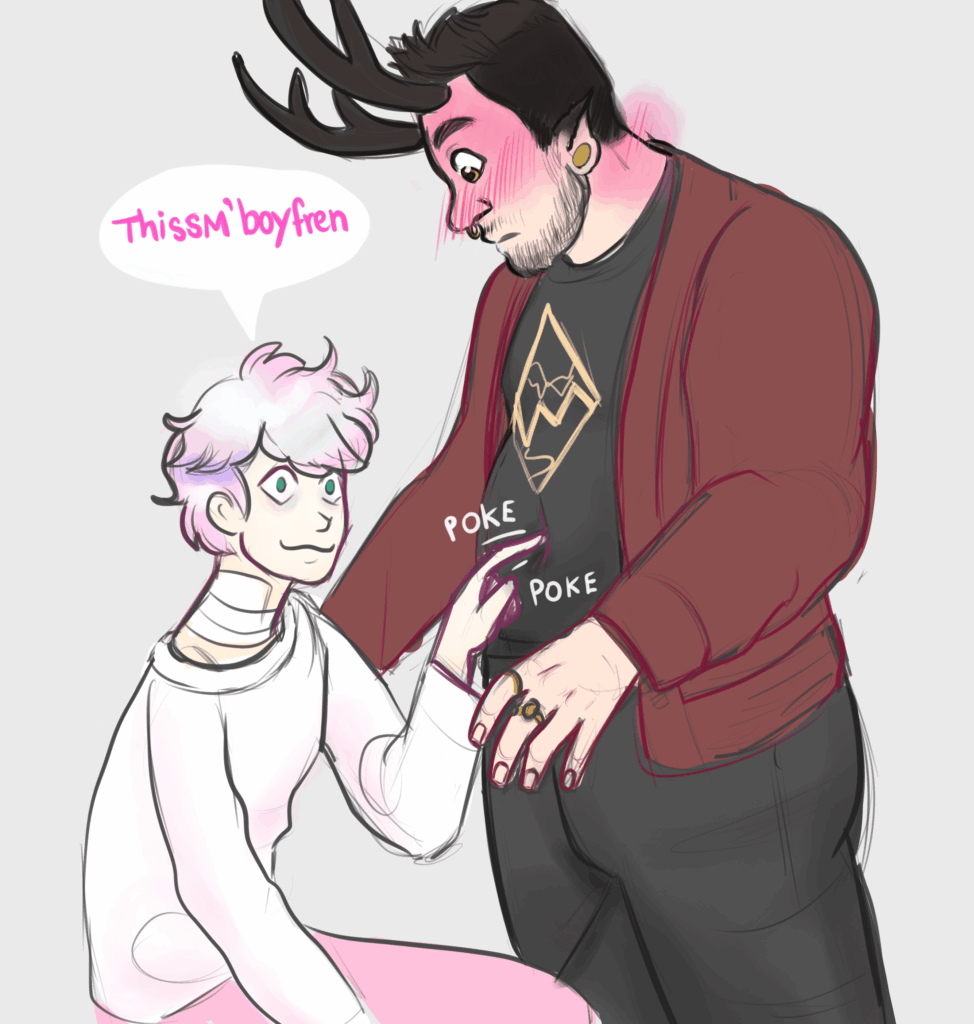 Also I’m really excited about Micah’s Balls of Holly shirt lol. Micah’s antlers are a play on his antler crown and balls of holly are because of his plant affinity so like TESTICLES MADE FROM PLANTS there I spelled it out for you idiots